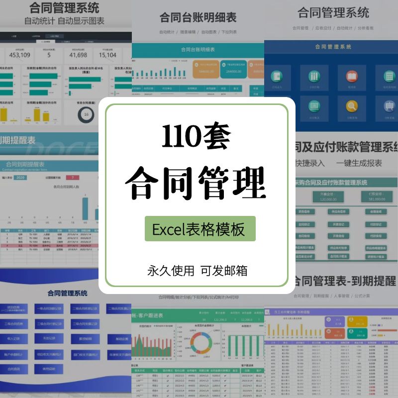 110套合同管理Excel表格系统到期提醒合同台账进度登记统计