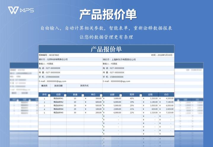 产品报价单可设参数,自动计算税费与总价Excel表格模板数据报表