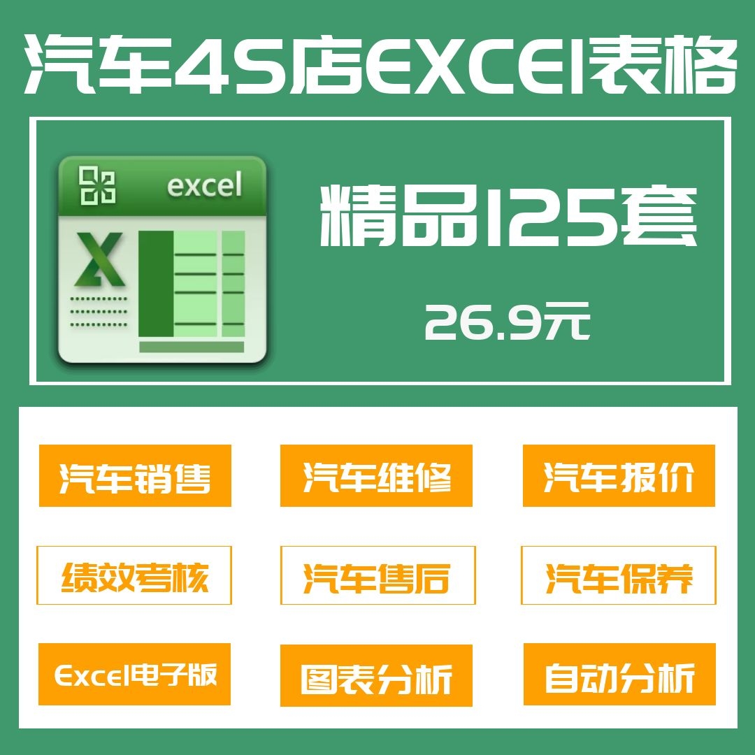125套汽车4S店用excel表格车辆销售维修保养人员绩效考核