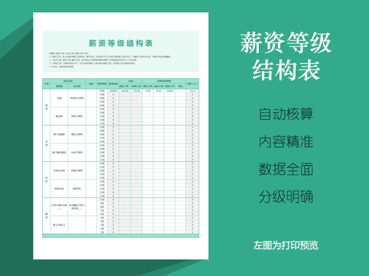 薪资等级结构表薪酬结构Excel模板表格自动核算分级明确数据全面
