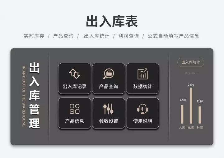进销存Excel表格库存出入库财务记账一体化系统仓库管理