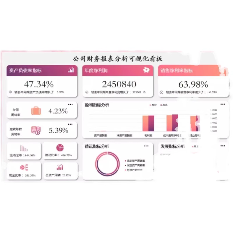 财务报表指标(偿债营运盈利发展)分析动态可视化看板Excel表格