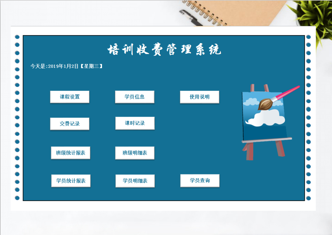 培训收费管理系统Excel表格模板学员课程管理交费记录
