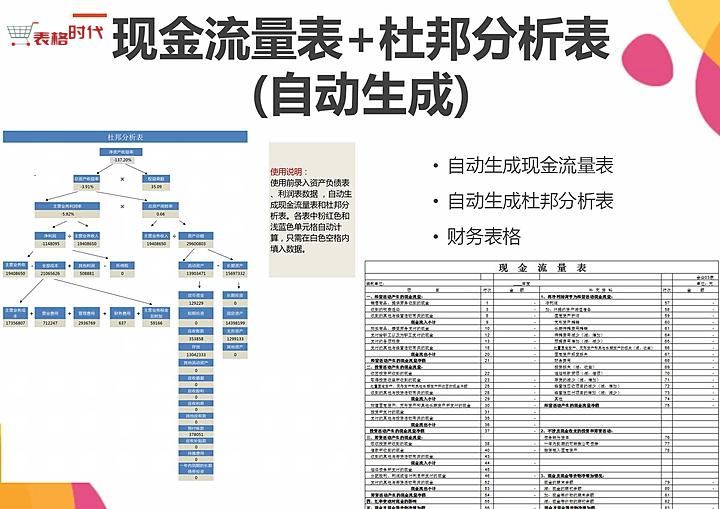 Excel表格模板录入资产负债表公式自动生成现金流量表杜邦分析表
