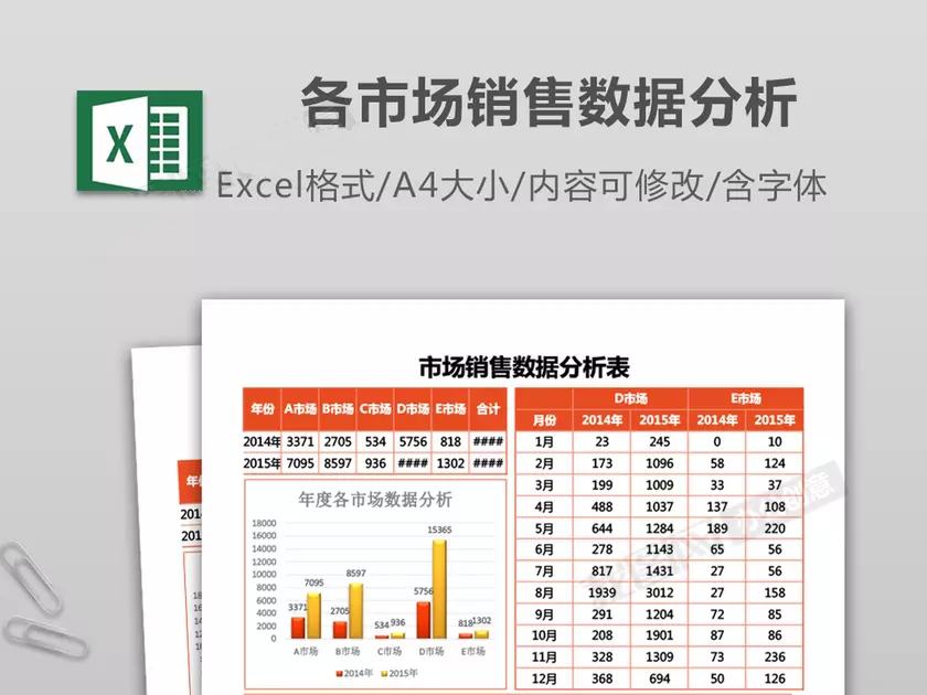 年度各市场销售数据分析excel模板表格总额分析图表自动生成