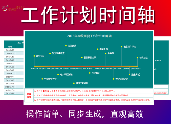 工作计划时间轴Excel表格模板输入计划同步自动生成时间轴图表