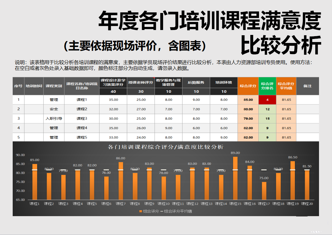 年度各门培训课程满意度比较分析主要依据现场评价excel表格模板