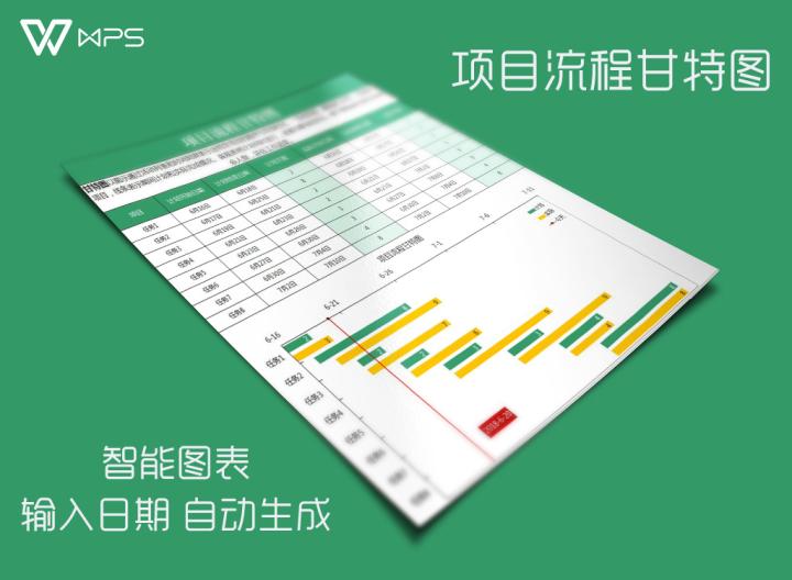 工程项目流程甘特图Excel表格模板智能图表输入日期自动生成
