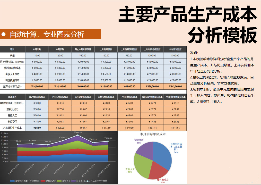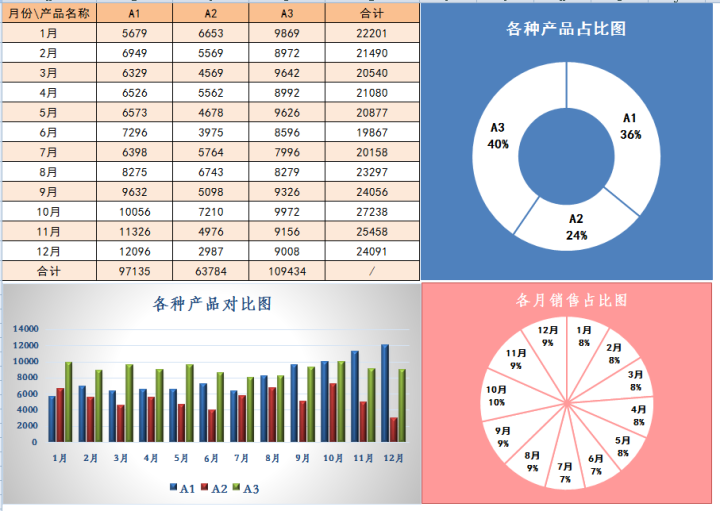 销售产品分析表Excel表格模板各种产品占比图对比图
