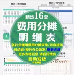 费用分摊统计明细表excel模板财务部门办公用品支出公司行政生产