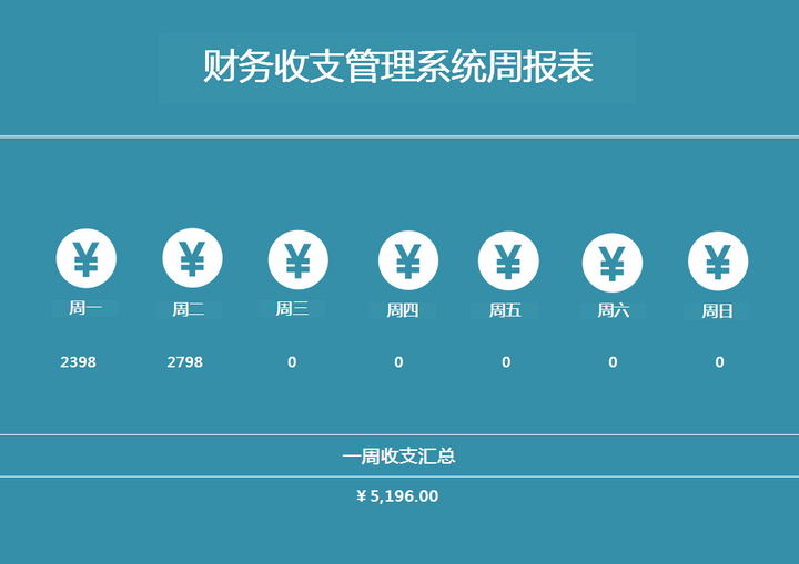 财务收支管理系统周报表Excel表格模板一周报表收支