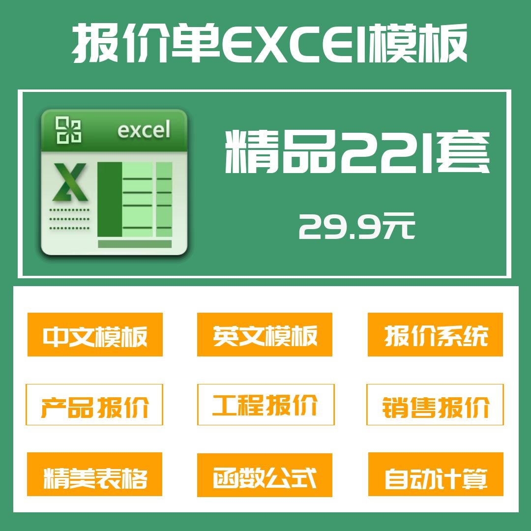 221套报价单Excel表格模板系统中英文公式自动计算产品工程销售