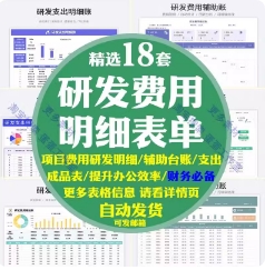 工程项目新品研发费用支出明细统计登记表单分类开支辅助台账科目