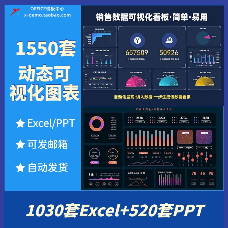 自动生成动态可视化图表Excel表格销售财务数据分析看板PPT
