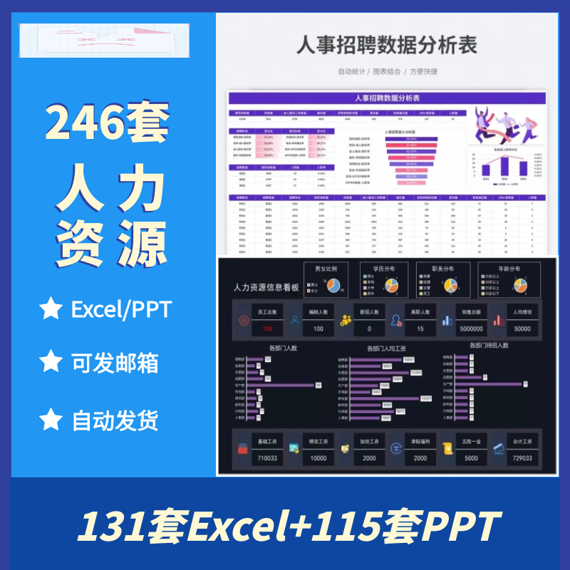 人力资源HR数据分析看板excel表格绩效员工入离职率人事招聘