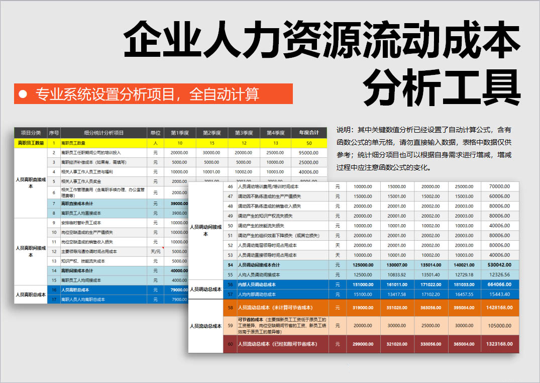 企业人力资源流动成本分析工具(专业、系统)含各季度Excel模板