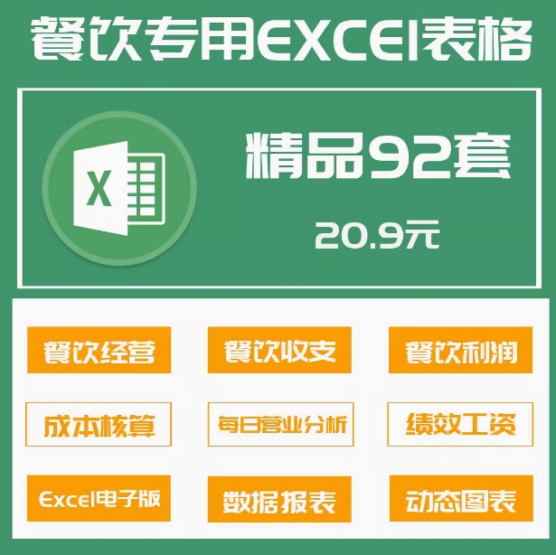92套餐饮专用Excel表格模板开餐饮店经营收支利润成本分析