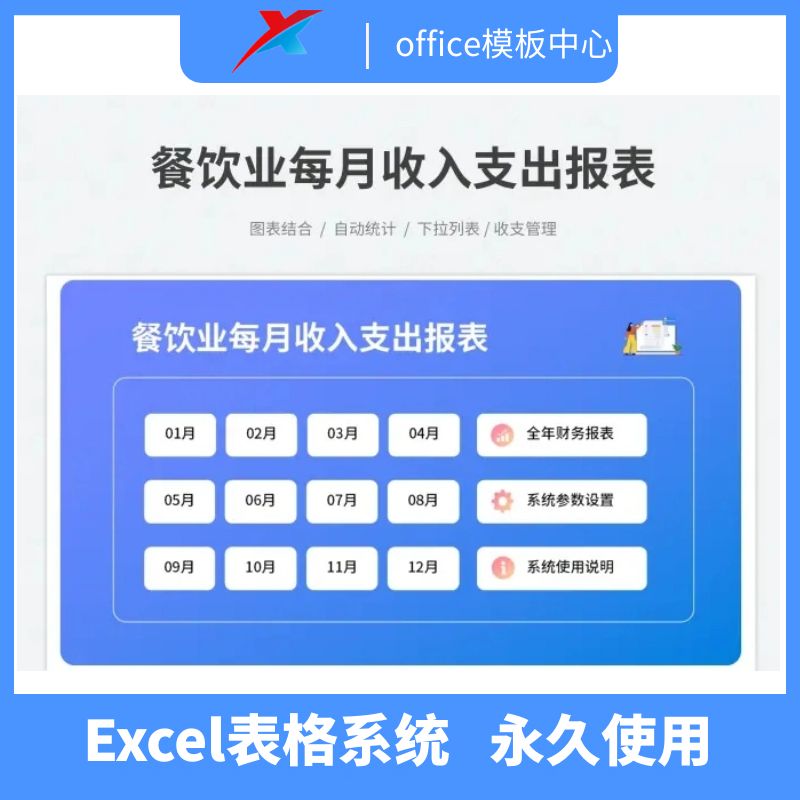 餐饮收支记账系统Excel表格餐饮业菜品每月收入支出利润报表软件