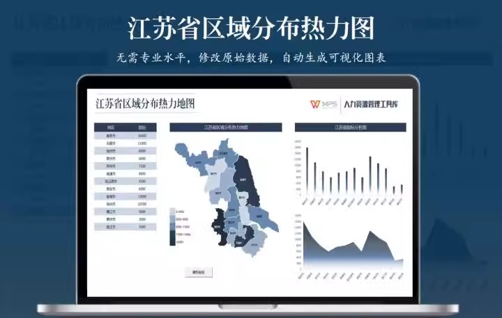 江苏省区域分布热力图(智能图表一键生成)Excel表格模板各地