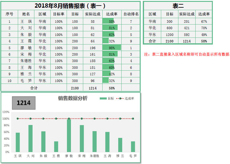 销售报表进度表(月报)Excel表格模板销售数据分析图表公式