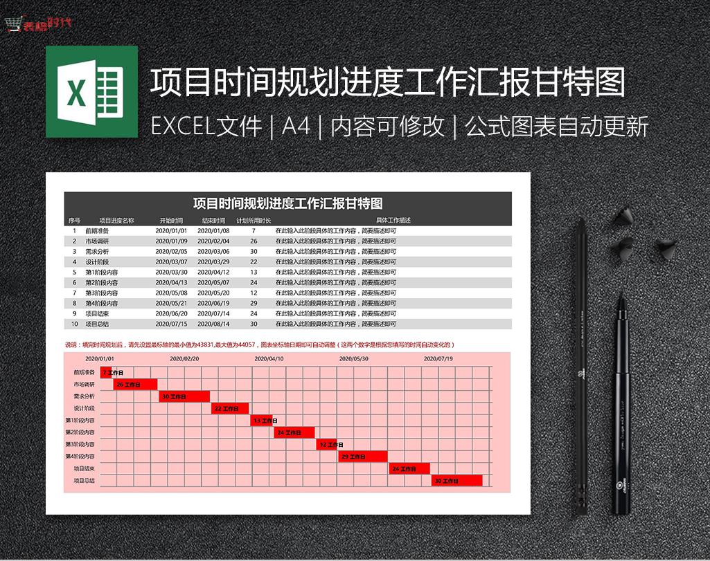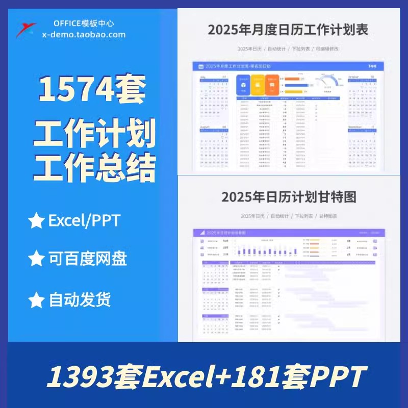 工作计划管理Excel表格年度工作总结PPT述职报告日历计划甘特图