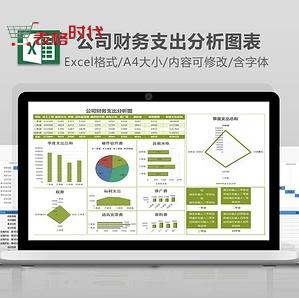 绿色美观公司财务支出分析图excel模板各项支出图表显示公式生成