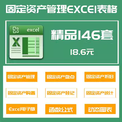146套固定资产管理excel表格固定资产盘点折旧报废登记台账统计