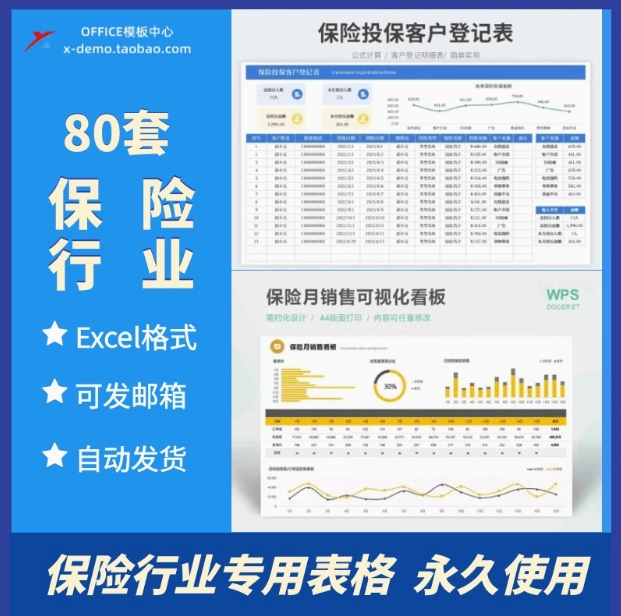 保险投保客户登记保险销售分析报表业务员每月成交理赔Excel表格