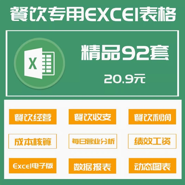 92套餐饮专用Excel表格模板开餐饮店经营收支利润成本分析