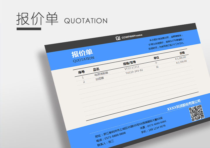 销售产品报价单(商用模板)Excel模板表格自动生成
