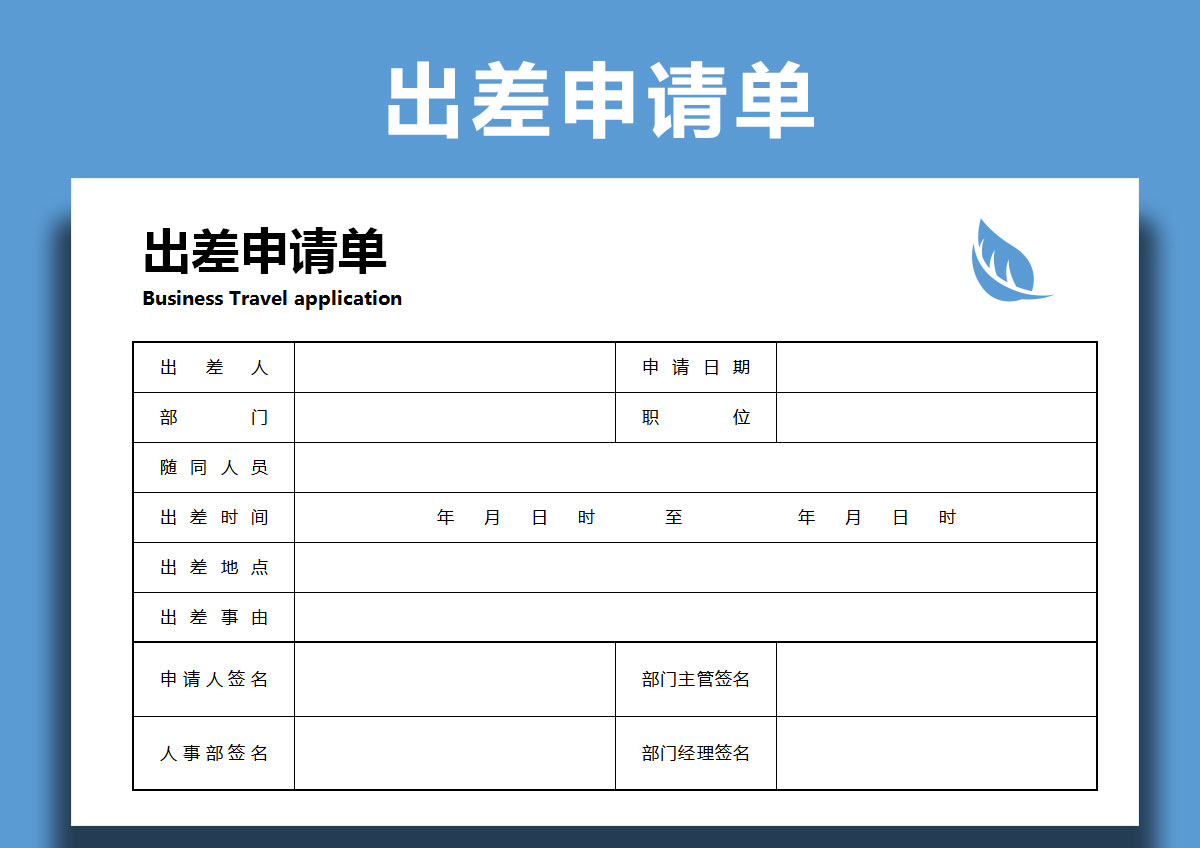出差申请表Excel模板表格公司出差人员填写申请表