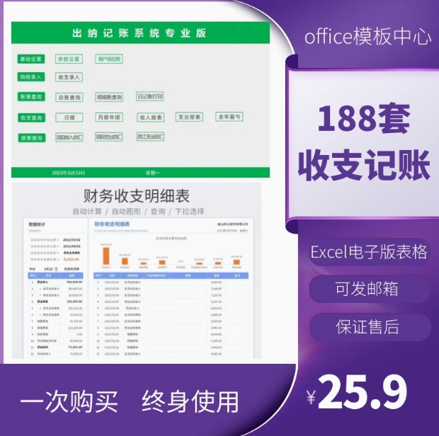 财务收支excel表格模板收入支出流水明细表个人家庭记账管理