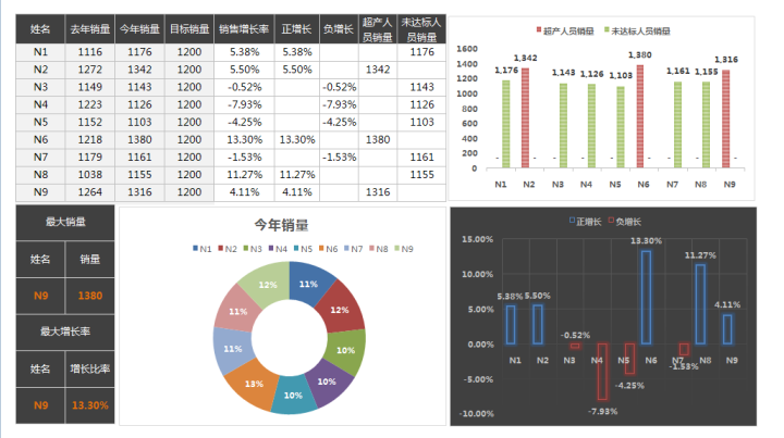 销售人员业绩分析表Excel表格模板销售增长率
