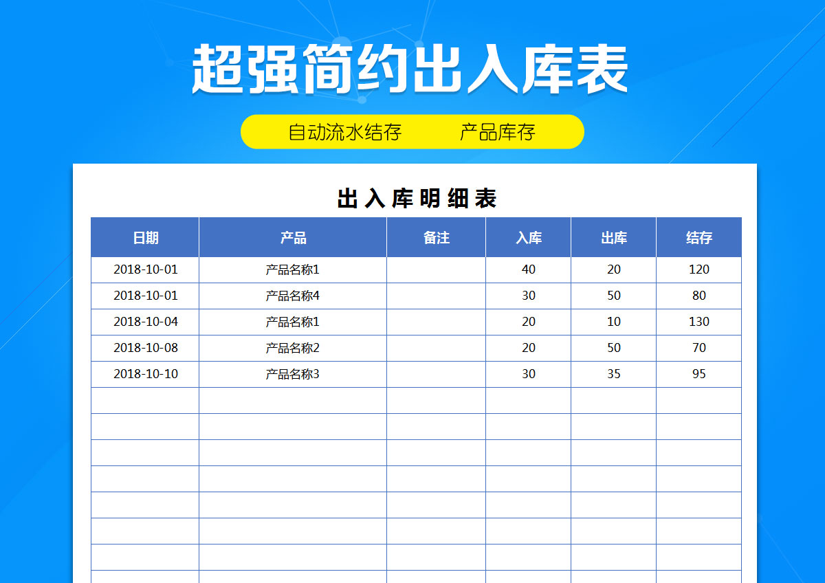 超强产品出入库明细表(实时库存,可随时补录)Excel模板表格
