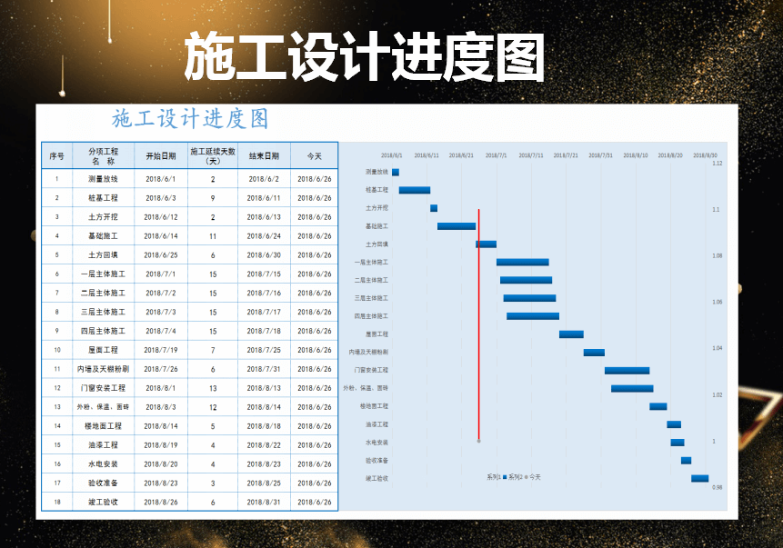 施工设计进度图Excel表格模板自动生成进度条