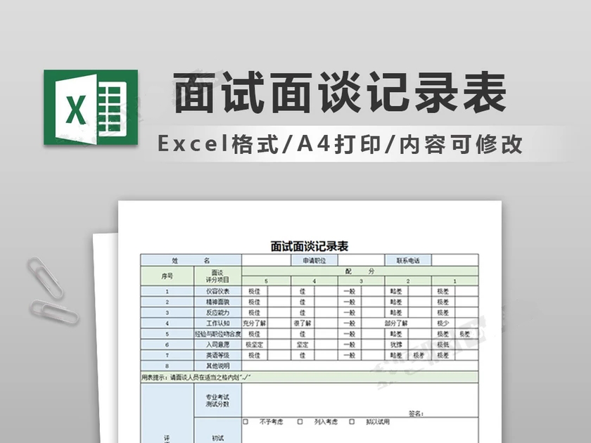 面谈记录表员工面试登记表员工档案Excel表格模板