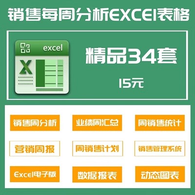 34套销售每周分析excel表格业绩周统计汇总分析营销周报