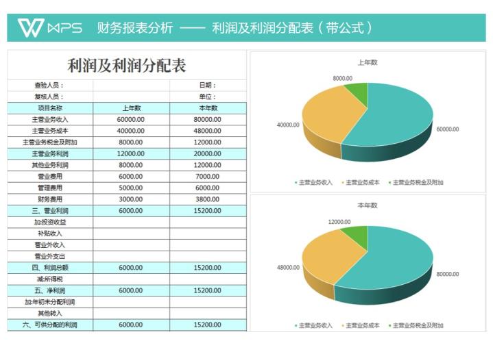 财务报表分析利润及利润分配表Excel表格模板财务报表分析带公式